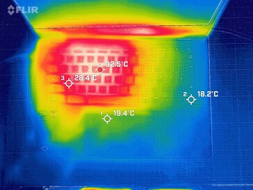 El MediaTek Kompanio 520 exhibe un bajo rendimiento, pero también genera un calor agradablemente bajo. Medimos una temperatura máxima de 37,1 °C (98,78 °F) en la parte inferior, y la parte superior del Chromebook sólo alcanza los 30,4 °C (86,72 °F). En consecuencia, el portátil nunca se calienta de forma incómoda durante su uso.