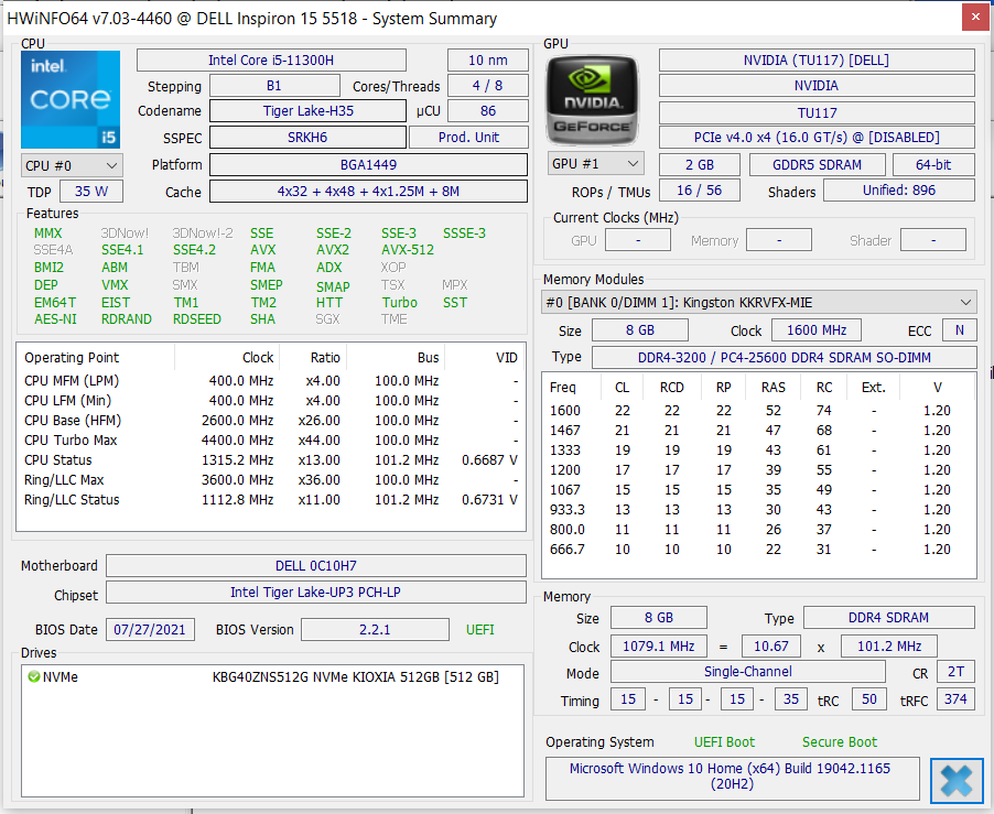 | 82.3 % v7 (old) | 09/2021 | Dell Inspiron 15 5518-2X3JR i5-11300H, GeForce MX450 | 1.8 kg | 18 mm | 15.60" | 1920x1080 | |