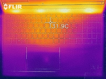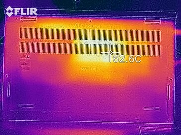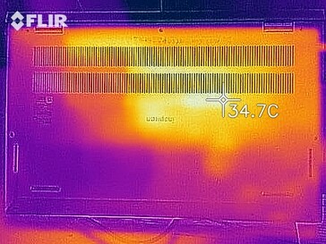 Las temperaturas de la carcasa están dentro de la zona verde en el uso diario (oficina, Internet).En la zona del disipador de calor se alcanzan valores superiores a 50 o 60 °C durante la carga completa del hardware. La competencia suele calentarse menos selectivamente,pero en total se calientan más.