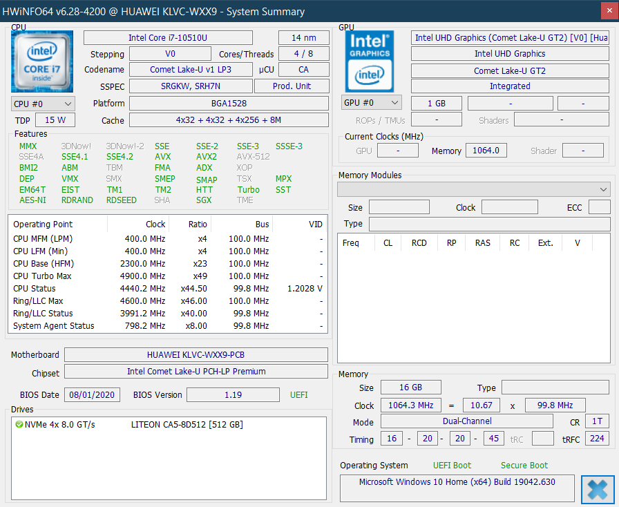 | 86.3 % v7 (old) | 12/2020 | Huawei MateBook 14 2020 Intel i7-10510U, GeForce MX350 | 1.5 kg | 15.9 mm | 14.00" | 2160x1440 | |