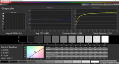 La pantalla ofrece una reproducción de color muy pobre, como revela nuestro análisis con el espectrofotómetro i1Pro 2 de X-Rite y el software CalMAN. Incluso después de la calibración, todavía hay grandes problemas con la saturación. Sin embargo, la calidad general de la imagen no es tan mala, gracias a una alta relación de contraste de 1682:1 y un valor de negro relativamente bajo