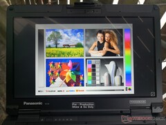 El Toughbook FZ-55 MK2 utiliza el mismo panel IPS InfoVision M140NWF5 R3 que se encuentra en el FZ-55 MK1, lo que significa que la experiencia de visualización sigue siendo esencialmente idéntica. El espacio de color es muy reducido, con sólo un 52% de sRGB, en comparación con el 95% de los Ultrabooks tradicionales. Por lo tanto, no esperes que los colores destaquen o sean lo suficientemente precisos para la edición de vídeo seria