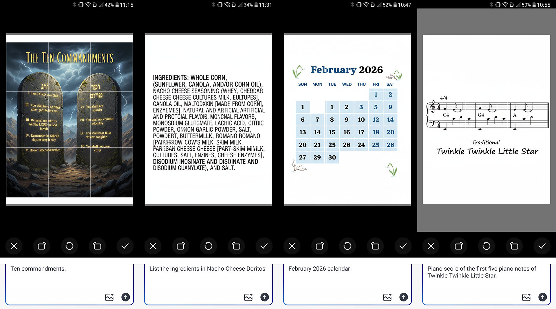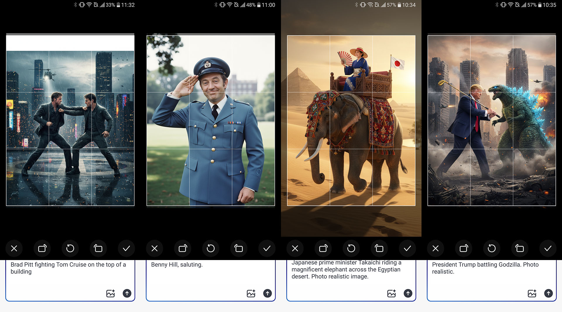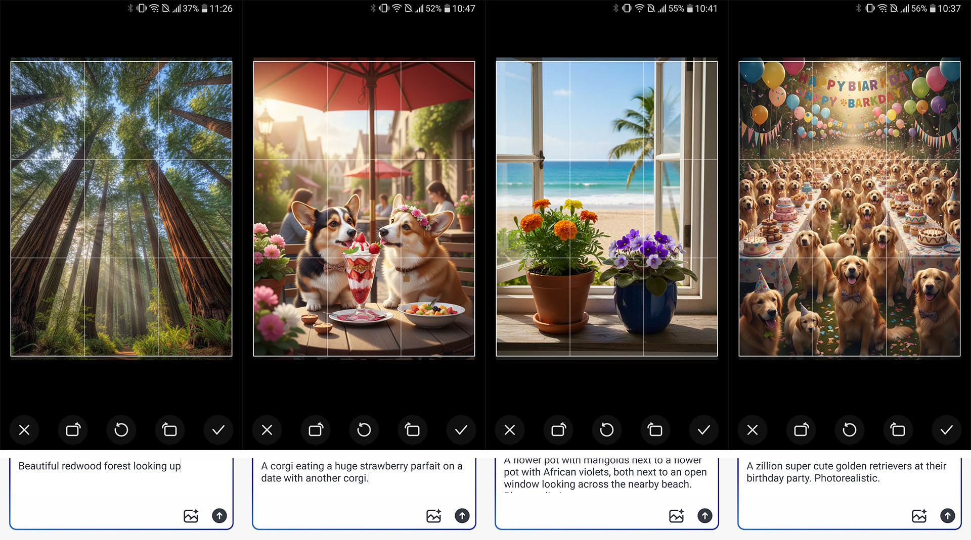 La IA es deficiente a la hora de generar textos, mapas y calendarios correctos, bastante fiable cuando crea listas de tareas y menús, ocasionalmente poco fiable cuando crea figuras conocidas, y bastante decente cuando crea arte de dibujos animados, relajantes escenas de la naturaleza o una multitud de simpáticos golden retrievers. Pueden producirse alucinaciones durante la generación de arte impulsado, como un tren que circula por un río o un objeto mostrado de forma incorrecta.