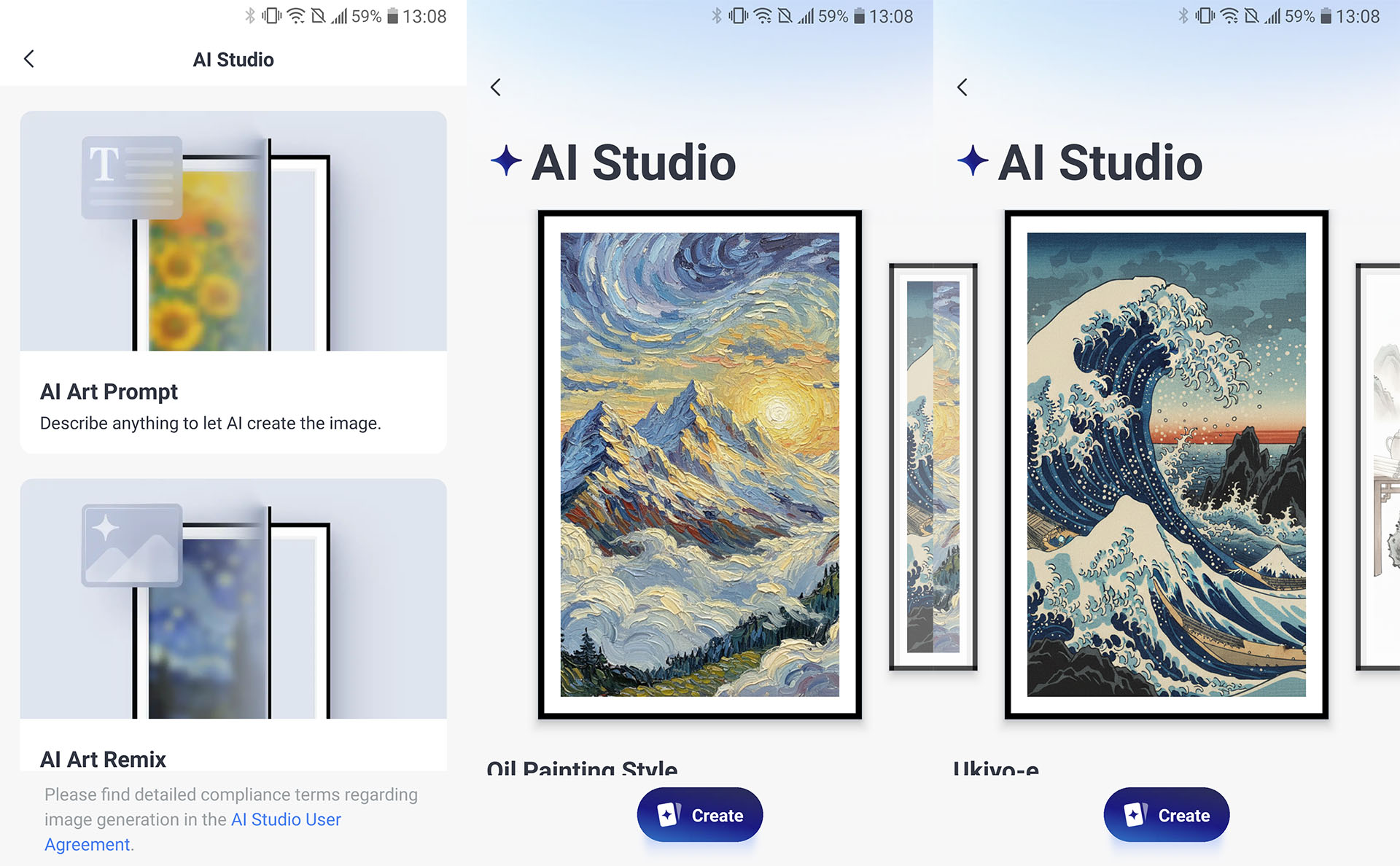 Los usuarios pueden sincronizar imágenes de su álbum de fotos, de la galería de arte clásica gratuita y de la galería de arte AI. Se pueden cargar hasta 10 imágenes y configurarlas para que cambien a una hora o intervalo determinados.