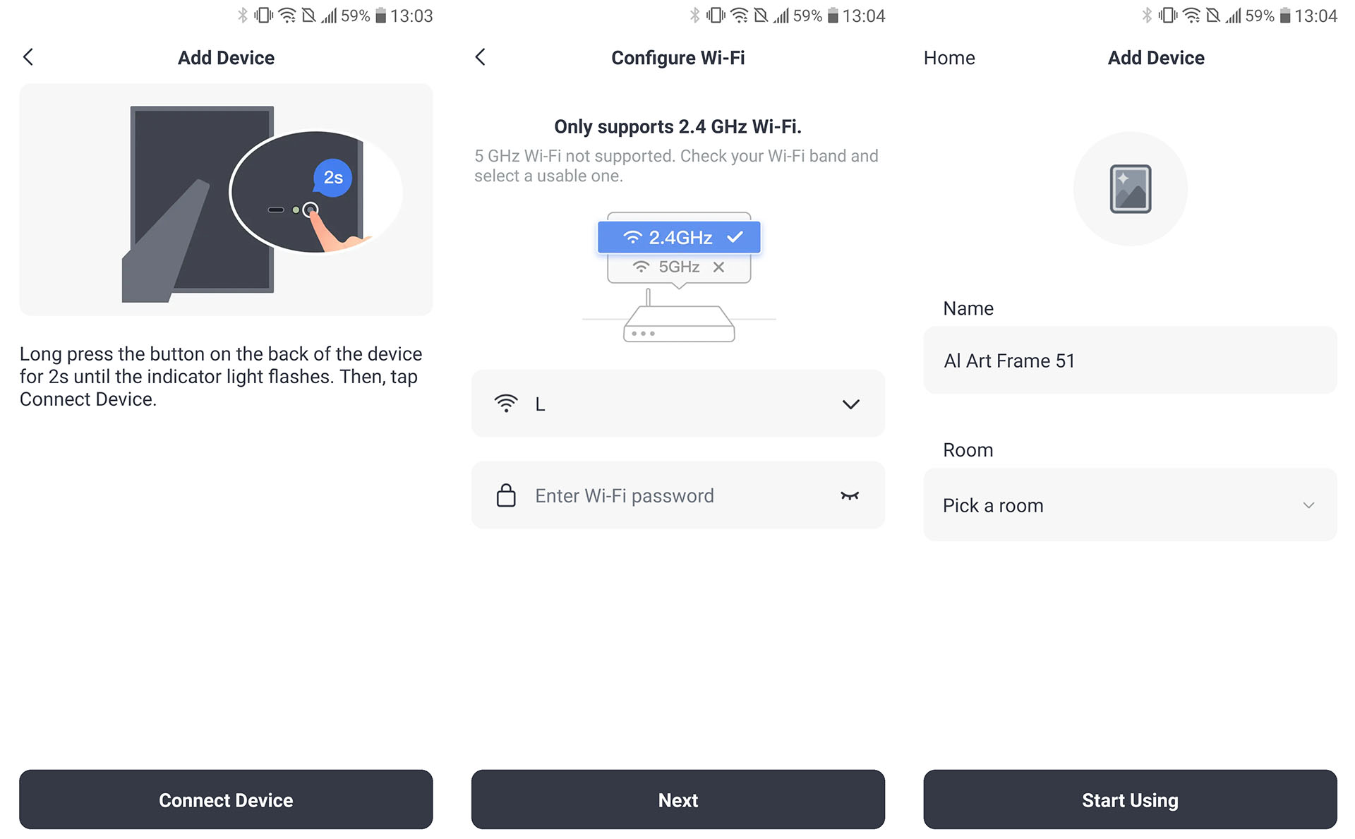 El marco artístico requiere conexiones Bluetooth y Wi-Fi, junto con la aplicación, para su configuración, lo que impide su uso en una cabaña remota, un barco u otra zona sin Wi-Fi.