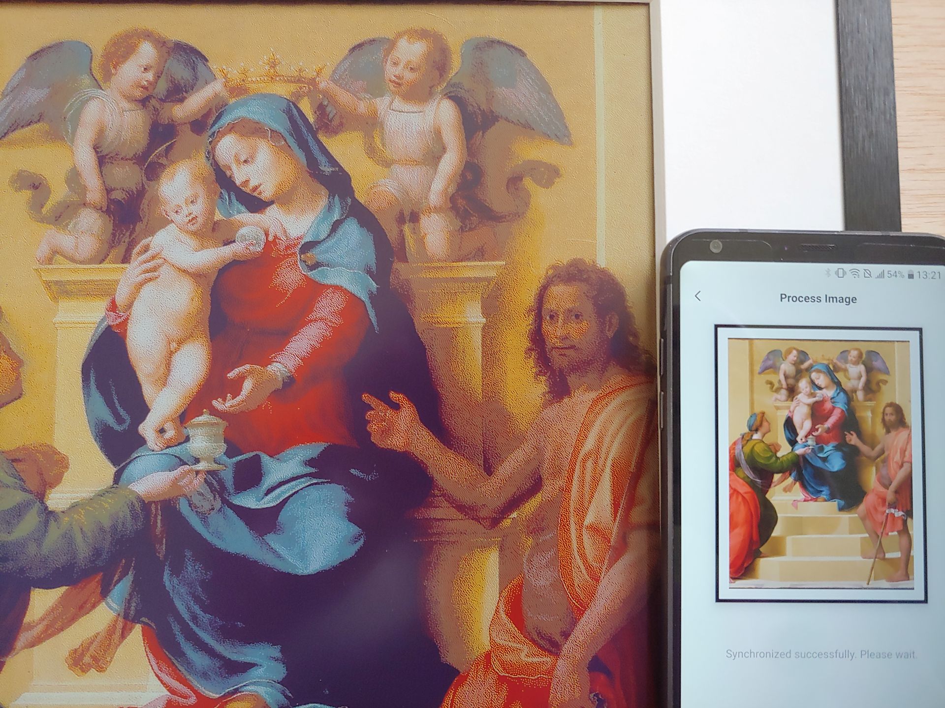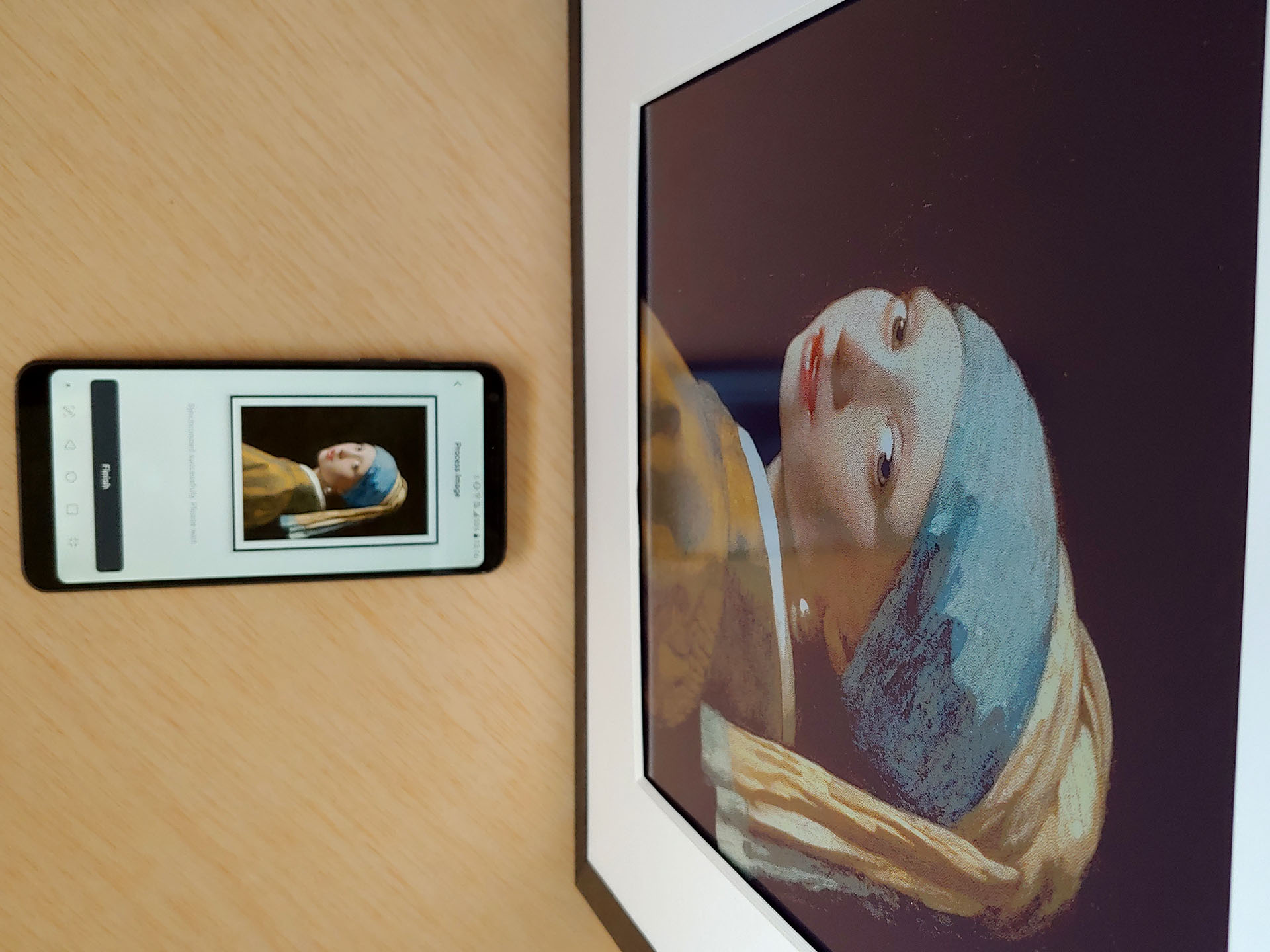 Las imágenes personales y las obras de arte clásicas gratuitas pueden editarse y cargarse en un minuto, durante el cual la imagen mostrada parpadeará y se invertirá varias veces. Se pueden almacenar hasta diez imágenes en el marco de arte para realizar pases de diapositivas cronometrados.