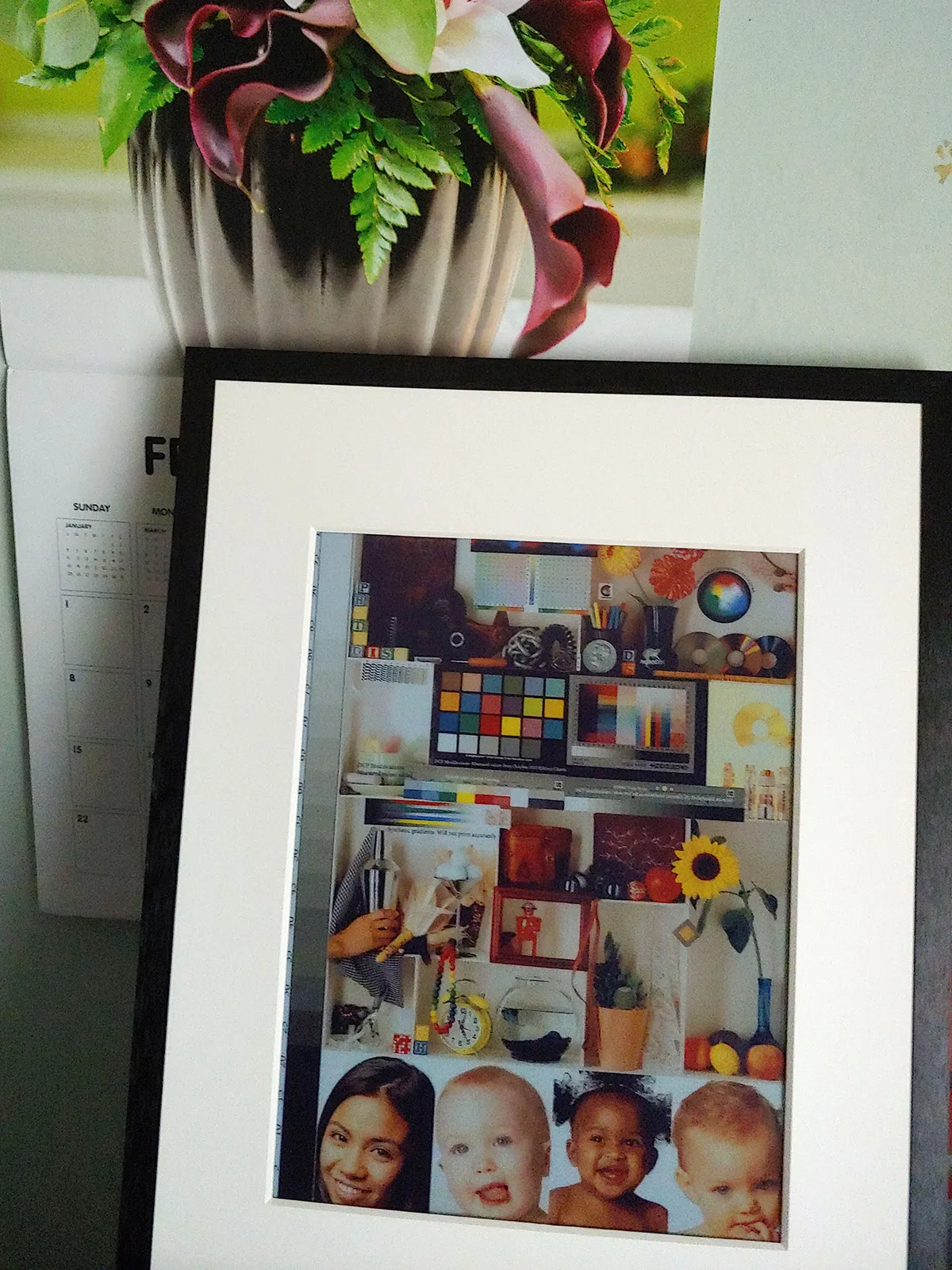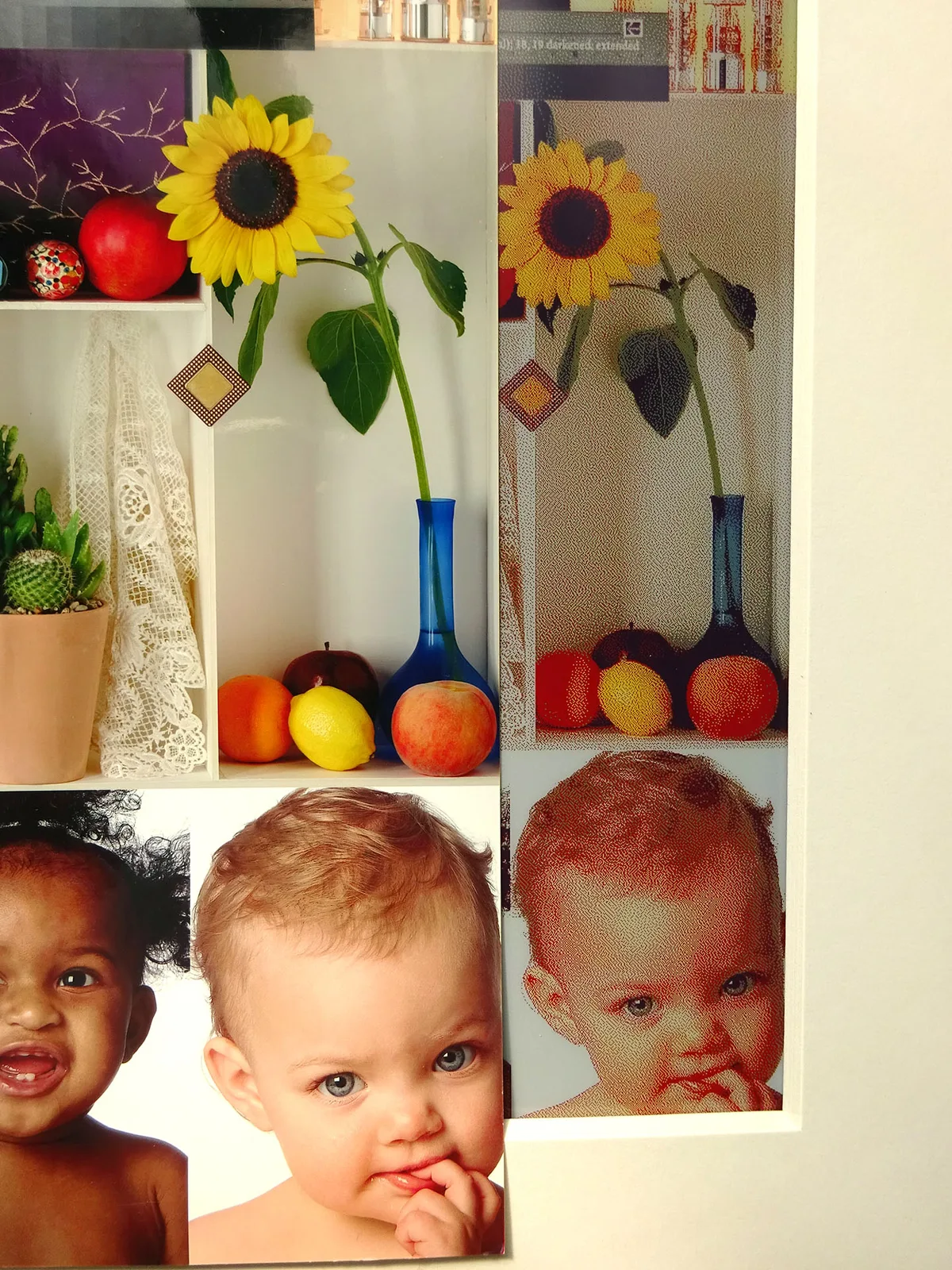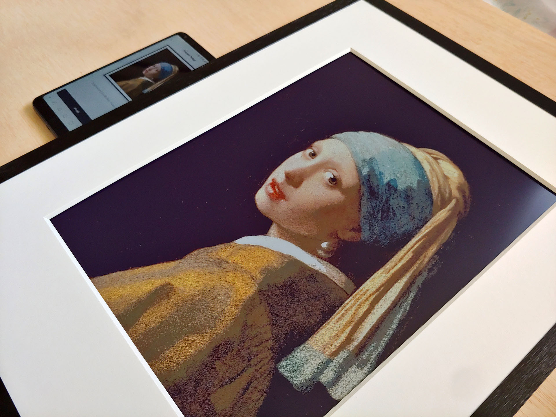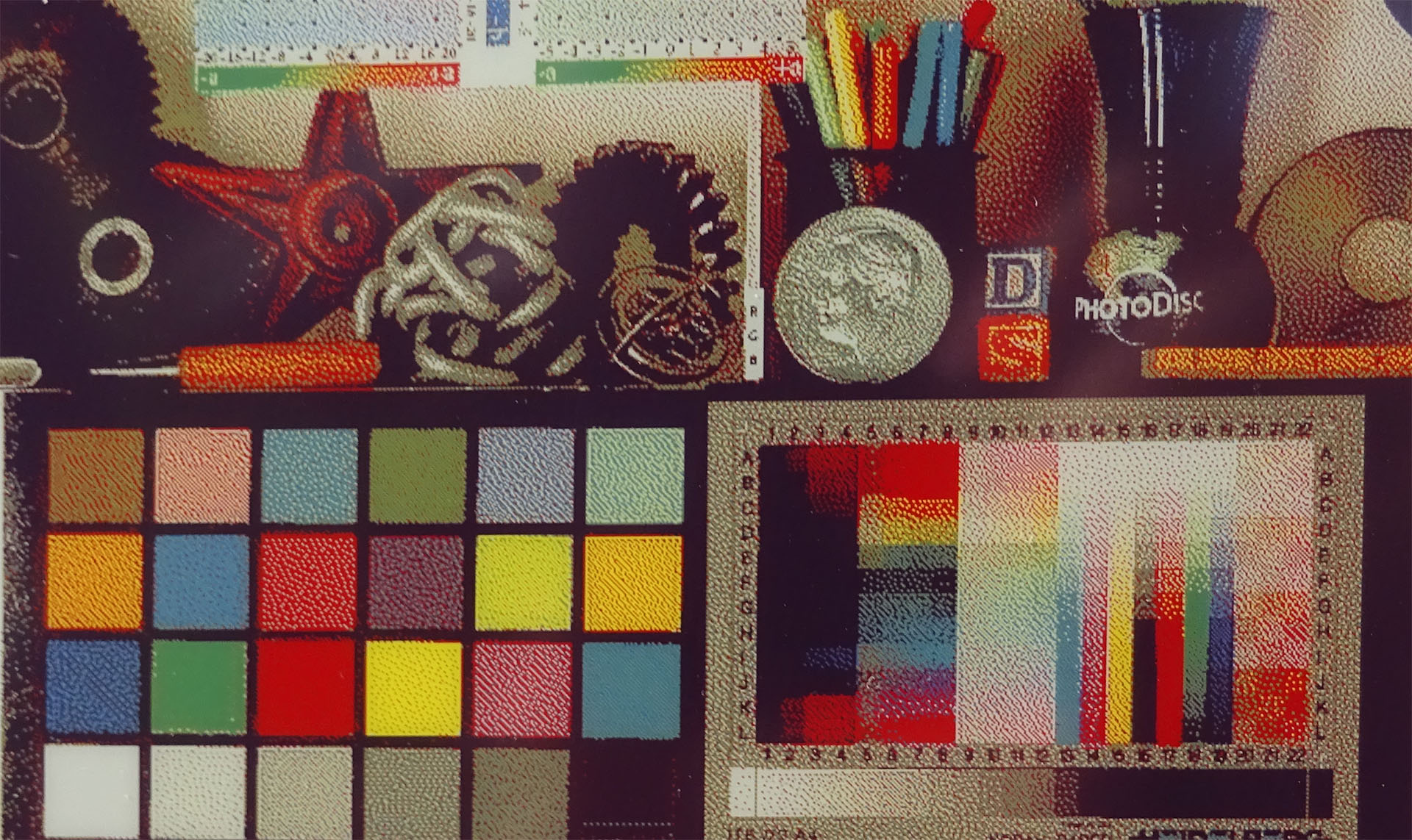 Una comparación con una impresión fotográfica de blanco de prueba Photodisc pone de manifiesto las limitaciones del panel E Ink Spectra 6. El fondo no es blanco puro, lo que limita el detalle de las sombras y el contraste máximo. La gama de colores también es limitada, especialmente en los verdes y los azules.