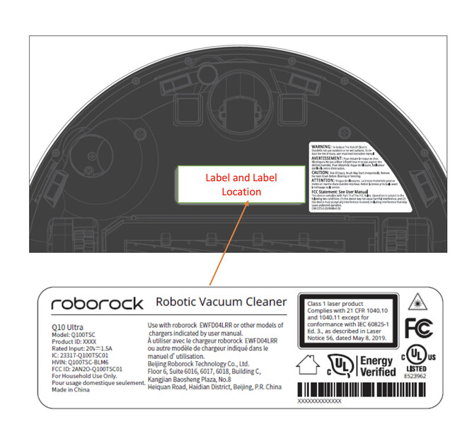 Como muestran las imágenes siguientes, Roborock ha certificado el Q10 Ultra para su venta en Estados Unidos. Por alguna razón, Roborock ha certificado el Q10 Ultra dos veces, ya que la FCC ha publicado documentación para el Q100TSC01 y Q100TSC02. Basándose en lanzamientos anteriores, es posible que Roborock distinga el par con diferentes muelles de vaciado; sin embargo, la FCC no revela ninguna diferencia entre el par aparte de sus números de modelo.