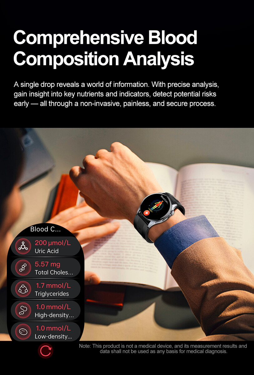 Para la captura del ECG, el D3 utiliza el chip AFE4950 de Texas Instruments https://www.ti.com/product/AFE4950que admite PPG sincronizado y ECG de una sola derivación. El cristal conductor de ECG y los electrodos laterales se colocan alrededor del marco para completar el circuito. Rogbid afirma que la captura de la señal se realiza en milisegundos, aunque, de nuevo, la precisión en el mundo real dependerá de la postura del usuario y del contacto con la piel. Un módulo óptico de cuatro canales se encarga de las mediciones de la frecuencia cardiaca y el oxígeno en sangre, y el reloj incluye un rápido "Mini Health Check" que recopila las lecturas básicas (FC, PA, SpO₂, temperatura y estrés) en aproximadamente medio minuto. El D3 es compatible con dispositivos Android que ejecuten la versión 8.0 o posterior y con iPhones que ejecuten iOS 13.0 o posterior.