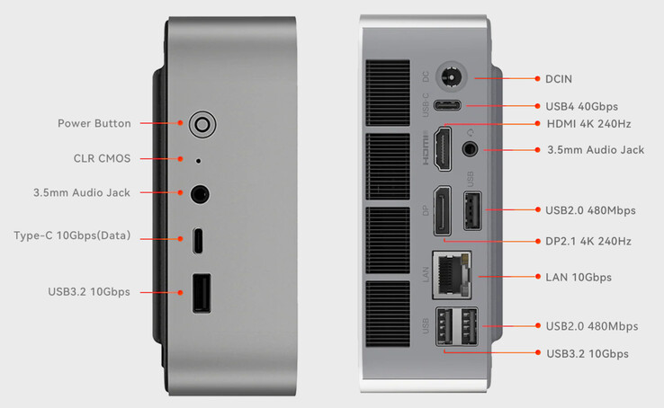 Ambas configuraciones cuentan con el nuevo Ryzen AI 9 HX 470 APU además de ranuras M.2 2280 y SODIMM para SSD PCIe 4.0 y RAM DDR5-5600, respectivamente. También dispone de una red LAN de 10 Gbps, así como una conexión USB4 entre otros puertos. Además, Beelink ha incluido un amplio sistema de refrigeración por cámara de vapor para minimizar el estrangulamiento térmico y el exceso de ruido de los ventiladores.