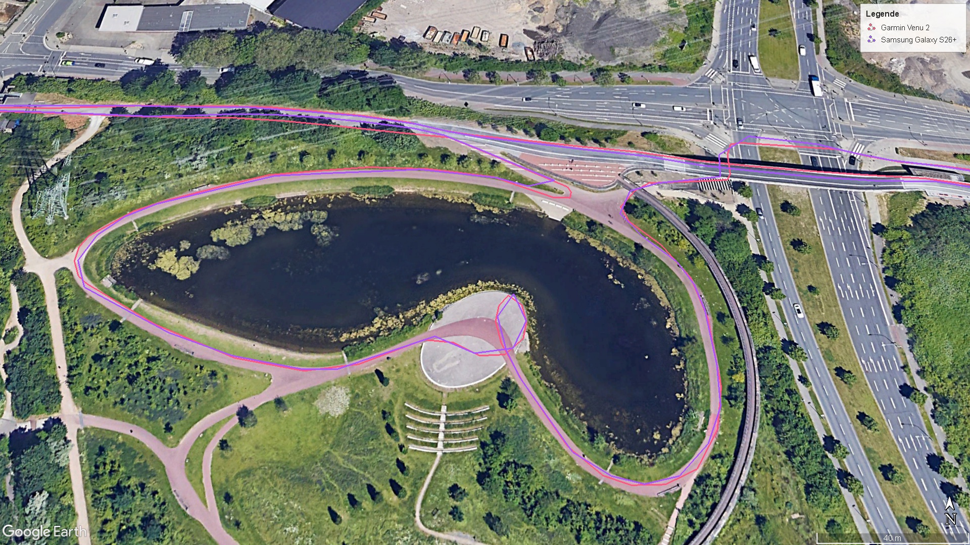 Comparamos el teléfono Samsung con un Garmin Venu 2 en un paseo en bicicleta. Las desviaciones de nuestra ruta son pequeñas en la prueba y, en algunos casos, mejores que las de nuestro smartwatch de referencia.
