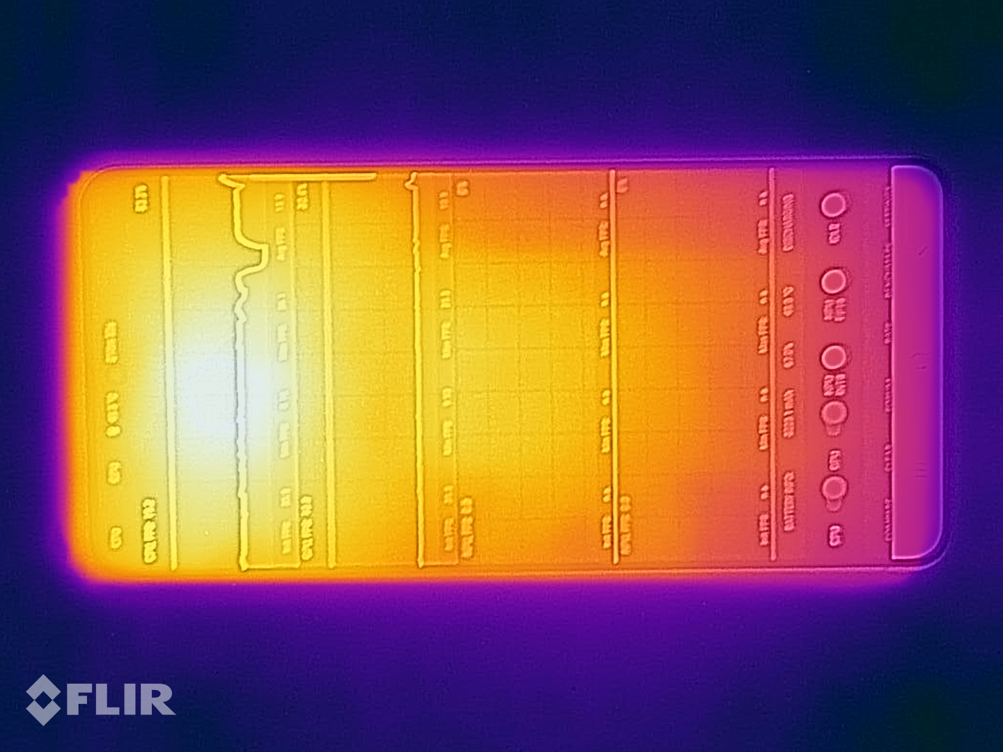 (-) La temperatura máxima en la parte superior es de 47.5 °C / 118 F, frente a la media de 35.2 °C / 95 F, que oscila entre 21.9 y 247 °C para la clase Smartphone.