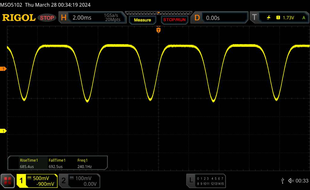 En todos los ajustes de brillo, la pantalla Super AMOLED parpadea de forma bastante constante a unos 240 Hz. Esta es un área en la que los usuarios sensibles pueden contar con quejas. El Galaxy A35 no ofrece un modo de atenuación DC.