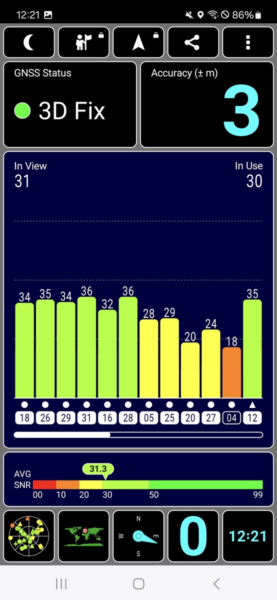 El Galaxy A35 determina su ubicación mediante los servicios de navegación por satélite GPS (L1), Glonass (L1), Galileo (E1), Beidou (B1, B1C) y QZSS (L1). En las pruebas, consiguió hacerlo con una precisión de hasta 2 metros.