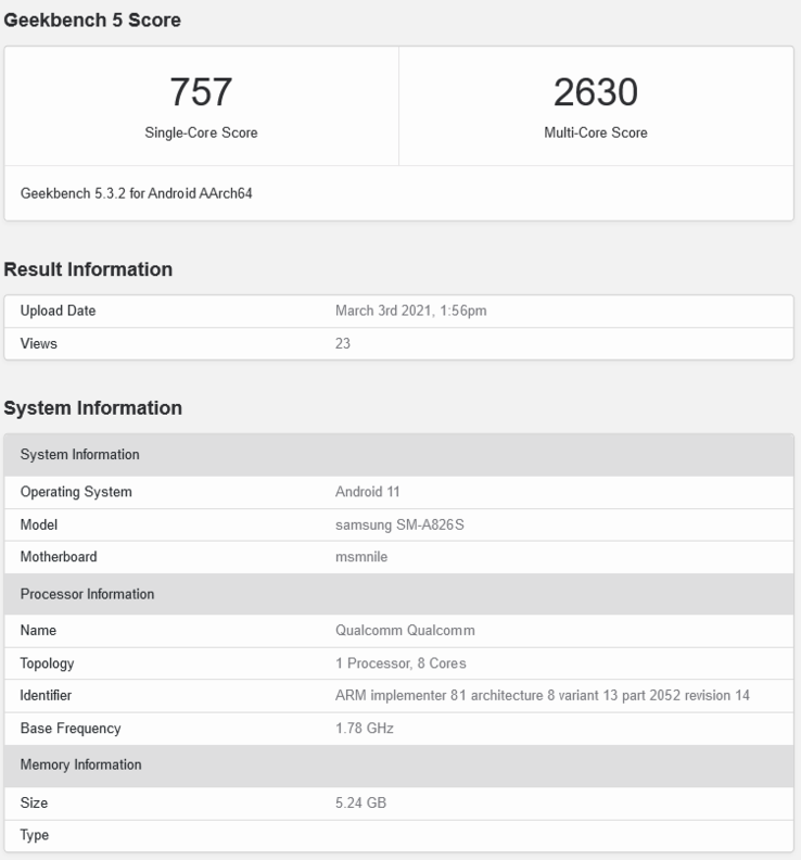 El apego de Samsung a los SoCs móviles más antiguos salió a la luz cuando lanzó el Samsung Galaxy F61 con un Exynos 9825 de hace dos años. Es probable que el Samsung Galaxy siga el mismo camino, según su listado en Geekbench . Sin embargo, esta vez bateará para el equipo Qualcomm, ya que se ha visto que lleva un Snapdragon 855