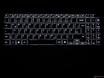 Sus dispositivos de entrada son idénticos a los del Galaxy Book4 Pro 16 y aunque sus pulsaciones son precisas, el teclado no es el mejor para escribir ya que las teclas tienen un recorrido muy corto. Las personas que escriben mucho deberían probar el teclado antes de comprar el portátil. Dispone de retroiluminación blanca de tres niveles para garantizar una buena visibilidad en entornos oscuros, que puede activarse automáticamente mediante un sensor. El gran clickpad es agradable y suave y funciona de forma fiable; los ruidos de clic son sólo un poco fuertes. También puede utilizar la pantalla táctil capacitiva para realizar entradas. El botón de encendido está integrado en la parte superior derecha del teclado y también actúa como escáner de huellas dactilares.