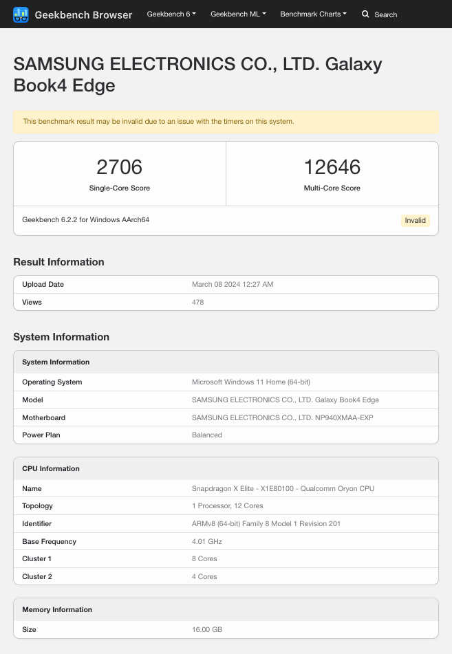 Roland Quandt y WinFuture han compartido nueva información sobre el primer portátil de Samsung alimentado por Snapdragon X Elite, unos días después de que la misma máquina apareciera en Geekbench. Para recapitular, Qualcomm hizo una demostración del Snapdragon X Elite el mes pasado durante el MWC 2024, cuyos detalles completos hemos cubierto por separado. Hasta ahora, sólo se han publicado dos listados de Geekbench, ambos afirman estar en un dispositivo llamado Galaxy Book4 Edge. Por cierto, Samsung patentó recientemente este nombre en la Oficina de Propiedad Intelectual de la Unión Europea (EUIPO) y es el nombre con el que Quandt se refiere al dispositivo.