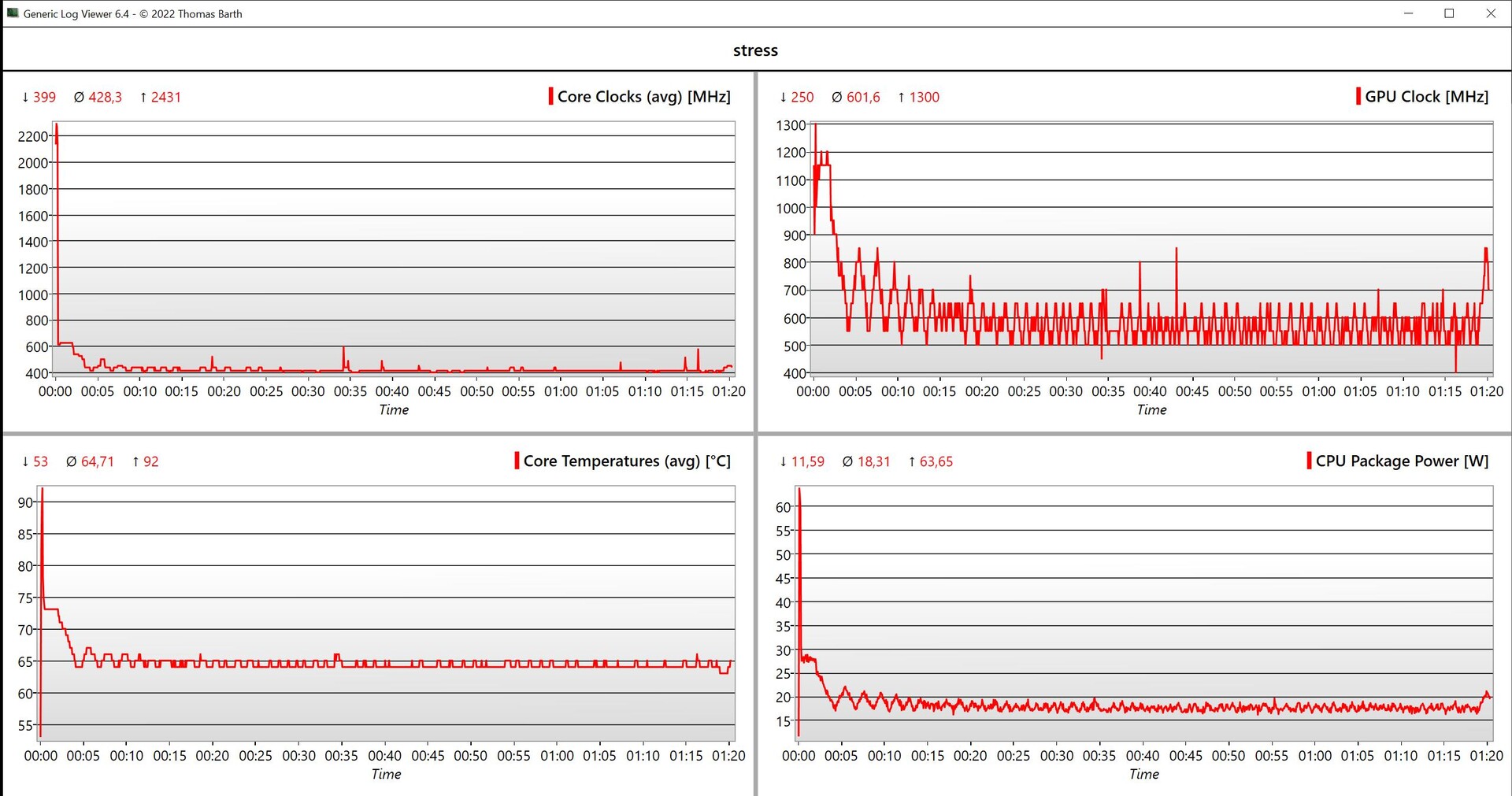 Las ventajas del nuevo procesador Meteor Lake (o más bien de los dos núcleos adicionales de bajo consumo) se perciben en la prueba de vídeo, en la que el dispositivo aguantó algo más de 15 horas. La misma prueba de vídeo HDR duró unas 4,5 horas con el brillo al máximo. La recarga completa de la batería suele llevar unas 2,5 horas (80 por ciento tras 110 minutos).