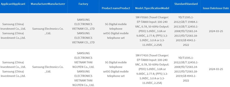 Ahora, la última filtración podría servir para moderar aún más esas expectativas, supuestamente por cortesía del regulador de seguridad chino 3C. Al parecer, acaba de certificar los Samsung SM-F7410 y SM-F9560, que se cree que se lanzarán como Galaxy Z Flip6 y Z Fold6 respectivamente.