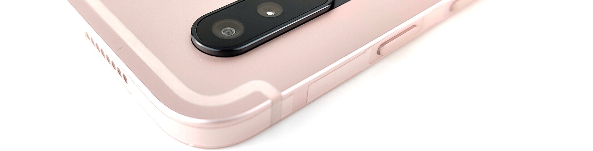 En la parte frontal del Galaxy Tab S8 Plus encontramos Gorilla Glass Victus+, y la carcasa está disponible en tres colores diferentes. Gracias a su revestimiento mate, es en su mayor parte resistente a las huellas dactilares, y deja una excelente impresión visual y háptica. Los botones físicos ofrecen un punto de acentuación muy agradable y se asientan firmemente dentro de sus respectivas cavidades. La ergonomía, por otro lado, no es la ideal debido al diseño cuadrado y afilado de la tableta, así como a la notable transición entre el marco metálico y la parte trasera.