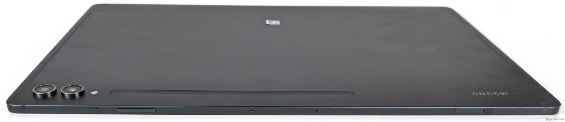 Para la parte frontal, se utiliza Corning Gorilla Glass 5, similar al Lenovo Tab Extreme y Xiaomi Pad 6 Max. La última generación de vidrio protector (Victus 1/2) no parece estar disponible para las pantallas XXL en este momento, incluso si tal compromiso no parece ser óptimo para una tableta cara de 1.340 Euros (~1.428$). Por otro lado, la relación pantalla/superficie frontal es de primera con casi el 91%, resultado de unos biseles muy delgados.