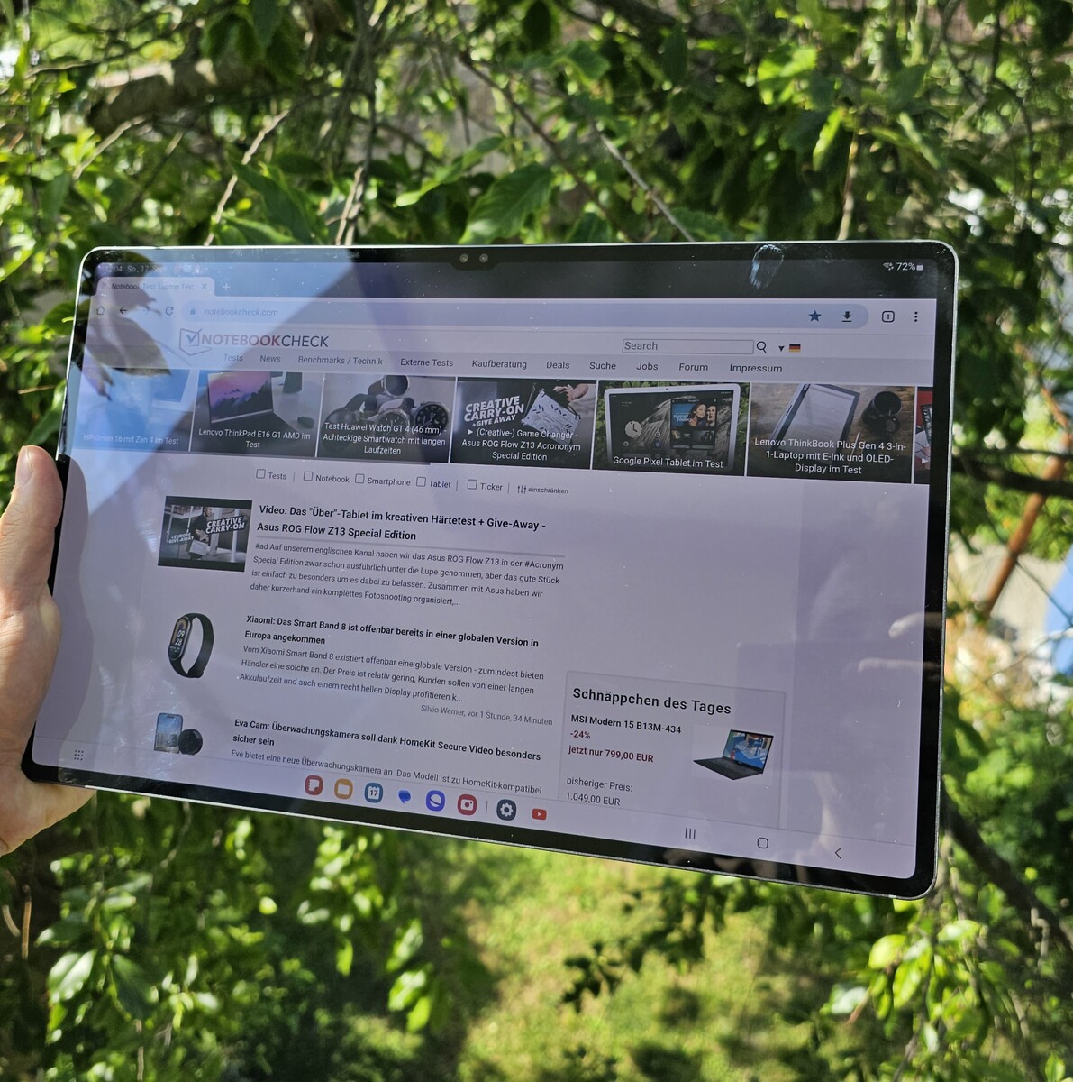 Todas las entradas en la enorme pantalla OLED hasta las esquinas de la pantalla táctil se implementan con precisión y rapidez. Gracias a la frecuencia de refresco de 120 Hz, el manejo de la tableta es muy fluido. El formato de pantalla 16:10 permite ver películas con bastantes menos barras negras que con un iPad Pro 12.9.