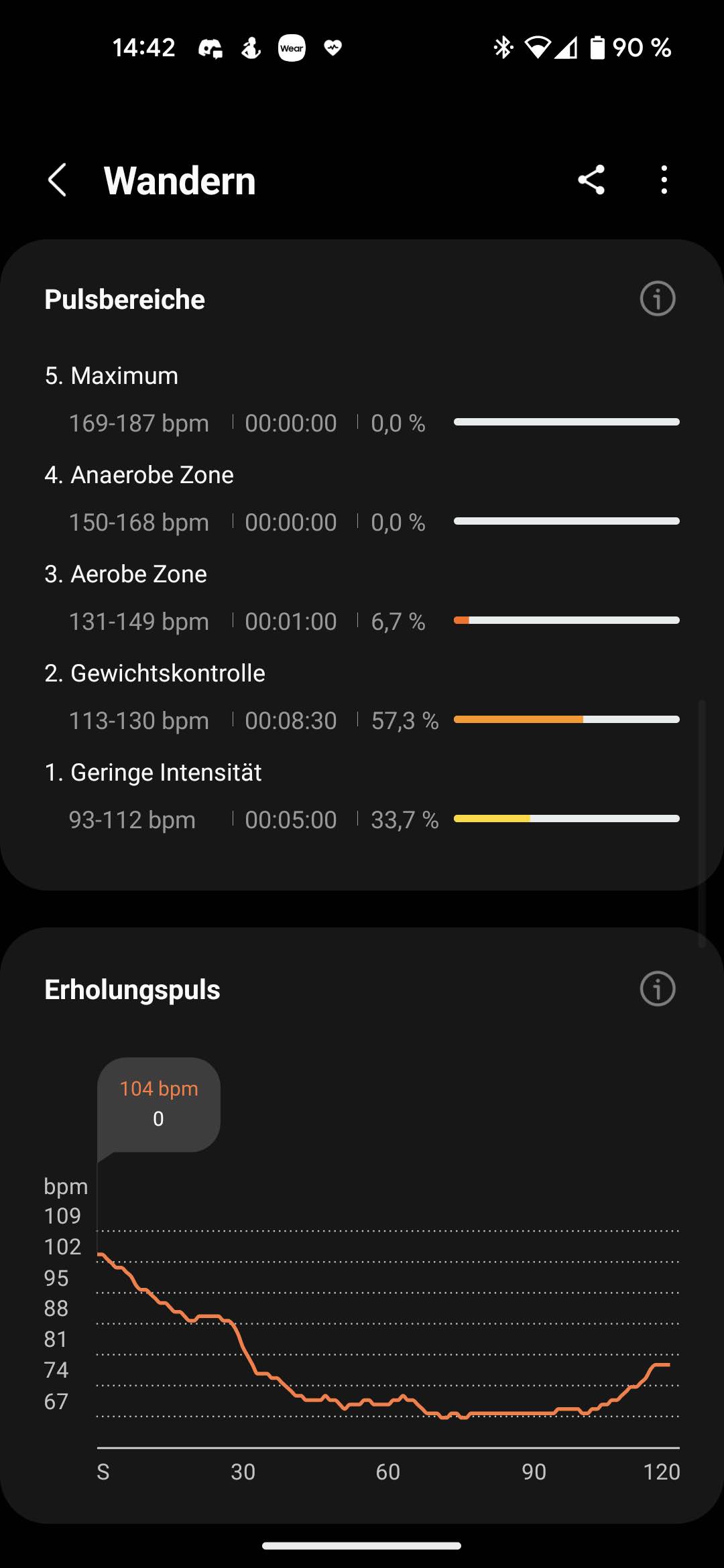 Los entrenamientos completados pueden verse tanto en el reloj como en el smartphone. La distancia completada se muestra con números y en forma de mapa. La velocidad, la altitud y el pulso (senderismo) también pueden mostrarse en un gráfico. Además, se indican los rangos de pulso individuales y el tiempo en ellos, así como el pulso de recuperación después del entrenamiento, los tiempos de las distancias parciales y otros detalles sobre el entrenamiento.