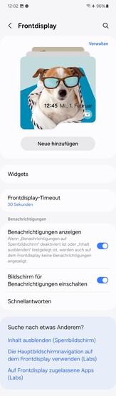 Una vez más, la pantalla externa puede mostrar varios widgets, un área en la que el Flip apenas se diferencia de su predecesor. También se pueden utilizar aplicaciones adaptadas. Sin embargo, la función debe activarse primero en Labs, y la lista sigue siendo muy incompleta.