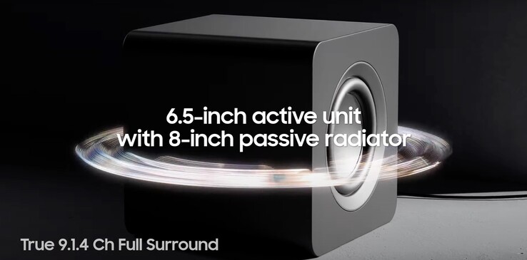 Con mucho, el mayor cambio aquí es el nuevo subwoofer cúbico. Con unas dimensiones de 249,0 x 251,8 x 249,0 mm, este subwoofer es significativamente más compacto que el del Q930D, que es a la vez más alto y más profundo (208,28 x 401,32 x 401,32 mm). Samsung afirma que el nuevo diseño permite que el subwoofer se integre más fácilmente en las salas de estar y, a pesar de su menor tamaño, no compromete el rendimiento. En el interior, el subwoofer incorpora un transductor activo de 6,5 pulgadas junto con un radiador pasivo de 8 pulgadas. La barra de sonido principal y los altavoces de proyección ascendente son prácticamente los mismos, al igual que la configuración de canales 9.1.4: 9 canales primarios de proyección frontal y lateral, un canal de subwoofer dedicado y cuatro canales de proyección ascendente (altura) para un sonido espacial basado en objetos, con 17 transductores repartidos por todo el sistema.