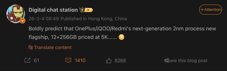 No obstante, Digital Chat Station cree que los precios de los nuevos buques insignia de OnePlus, iQOO e incluso Redmi comenzarán en torno a los 5.000 CNY (~725 dólares). Así, el rumoreado Redmi K100 Pro Max podría costar más de un 25% más que el actual Redmi K90 Pro Maxque está disponible en todo el mundo como el Poco F8 Ultra.