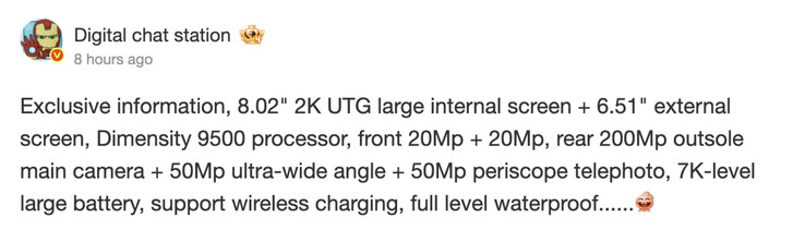 Además, el X Fold6 mantendrá la compatibilidad con la carga inalámbrica y lo que Digital Chat Station afirma que es una resistencia al agua "de primer nivel". Aparentemente, Vivo también cambiará a MediaTek y su Dimensity 9500 para el X Fold6. Un chipset de 3 nm, el Dimensity 9500 ya se puede encontrar en el Vivo X9el X300 y sus homólogos Pro.