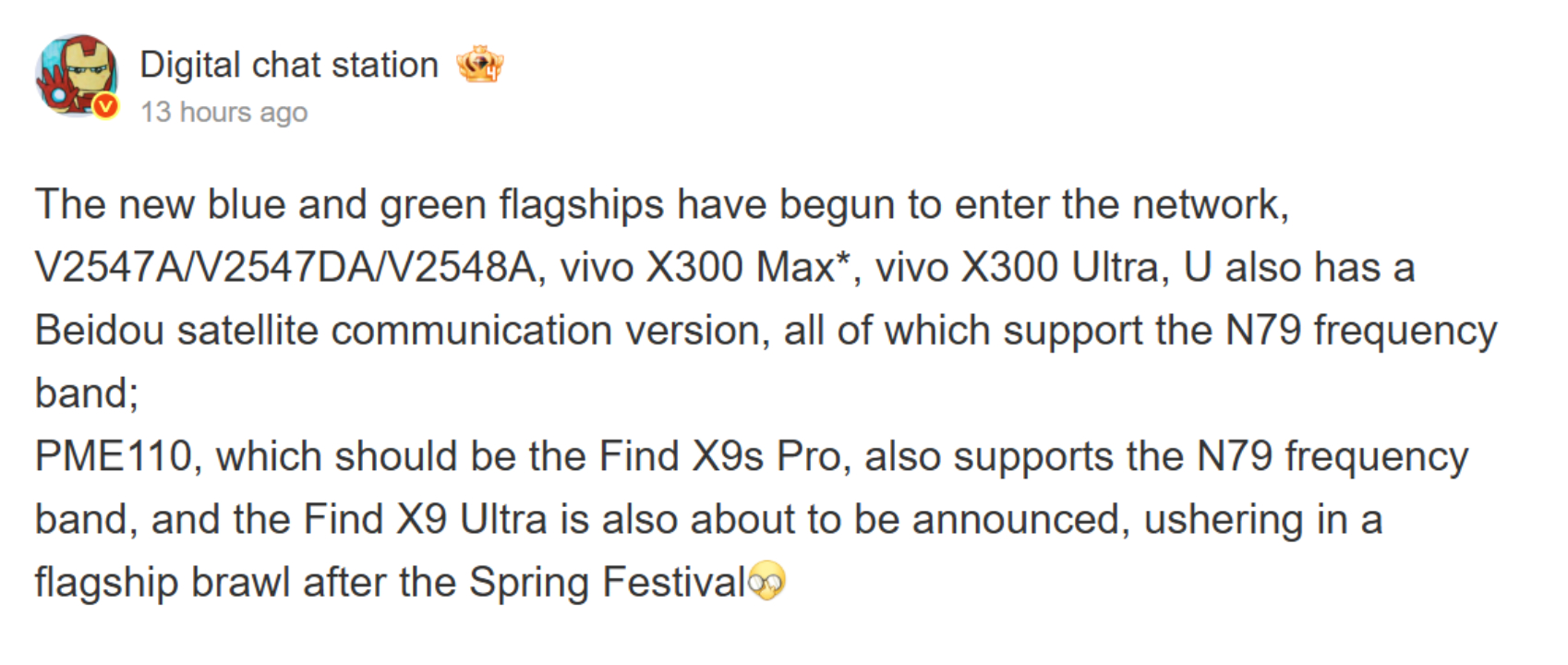 Por el momento, el filtrador no ha proporcionado ninguna prueba de que esto haya ocurrido todavía. No obstante, si el X300 Max existe, el número de modelo V2548A debería aparecer en otras filtraciones durante el próximo mes aproximadamente. Basándose en el post de Weibo que aparece a continuación, parece que Vivo podría presentar el X300 Max el mes que viene junto con el X300 Ultra (V2547A).