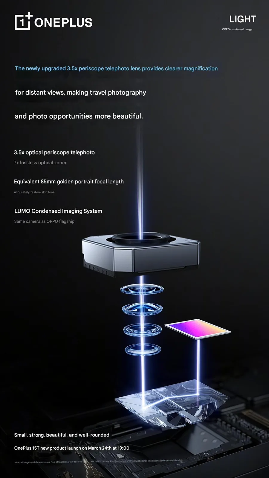 En la tanda más reciente de teasers, OnePlus ha confirmado detalles relativos a la configuración de la cámara del smartphone. Según una publicación de Weibo realizada por la marca, el OnePlus 15T contará con un tirador primario de 50 MP con una apertura de f/1,8, así como una cámara teleobjetivo periscópica de 50 MP f/2,8 con capacidades de zoom óptico de 3,5x. También se ha mencionado que el tirador primario utilizará un sensor de 1/1,56 pulgadas fabricado por Sony.