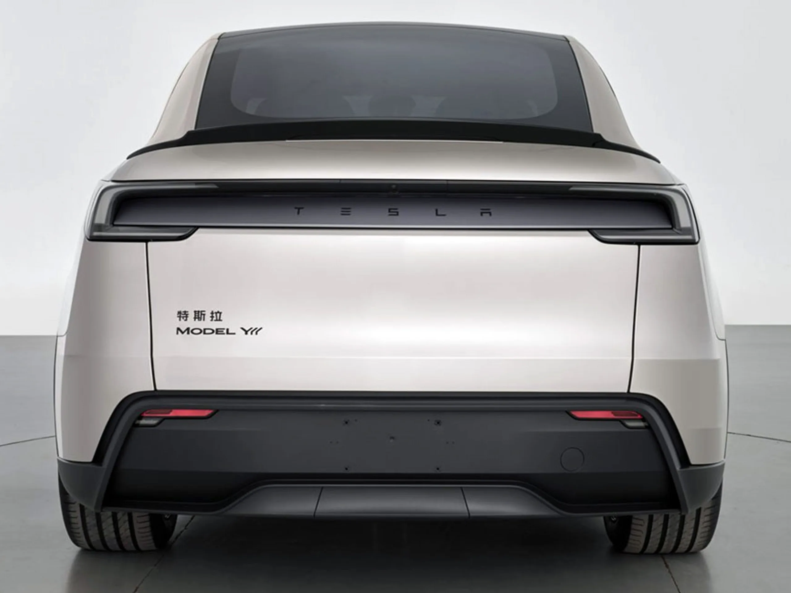 Hay dos imágenes del vehículo en una toma lateral y otra trasera, pero es difícil deducir la ubicación exacta de los asientos en ellas, y sólo la mayor distancia entre ejes y el logotipo estilizado indican que podría tratarse de un Model Y de tres filas de asientos.