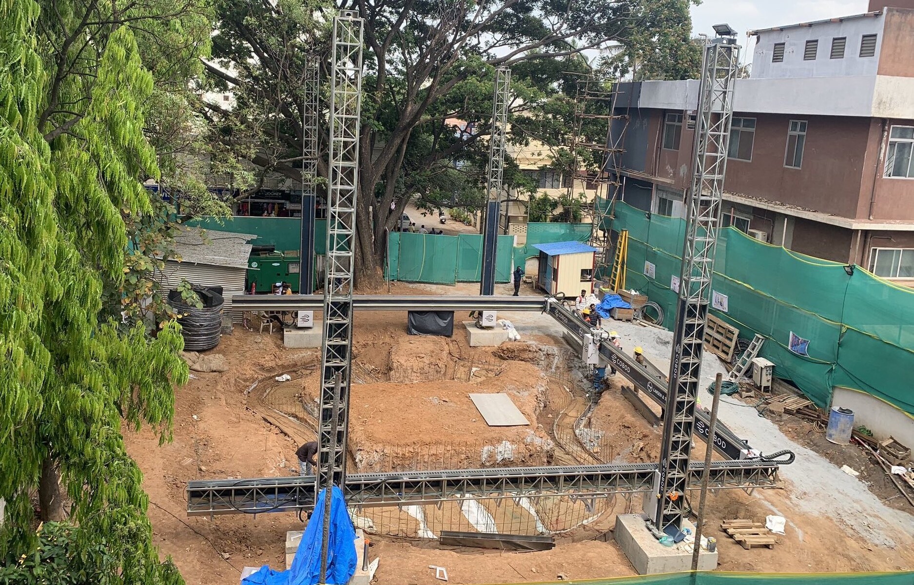 El proyecto fue ejecutado por el gigante indio de la construcción Larsen & Toubro (L&T)con el asesoramiento técnico del Instituto Indio de Tecnología (IIT) de Madrás. En el proceso se utilizó una BOD2la impresora 3D de construcción más rápida y utilizada del mercado, con una velocidad de impresión de hasta 1 metro por segundo. Como muestran las fotos, consta de un bastidor modular (también conocido como pórtico) que se instaló in situ y se configuró específicamente para la zona del proyecto. El BOD2 es el único capaz de utilizar hormigón real (de secado rápido), en lugar de morteros premezclados, que no sólo son más débiles, sino entre 5 y 10 veces más caros. En este caso, se vertió hormigón local capa por capa (como en una impresora 3D de sobremesa) para crear muros curvos sin juntas formados por tres capas verticales: una capa de hormigón armado entre dos no armadas.