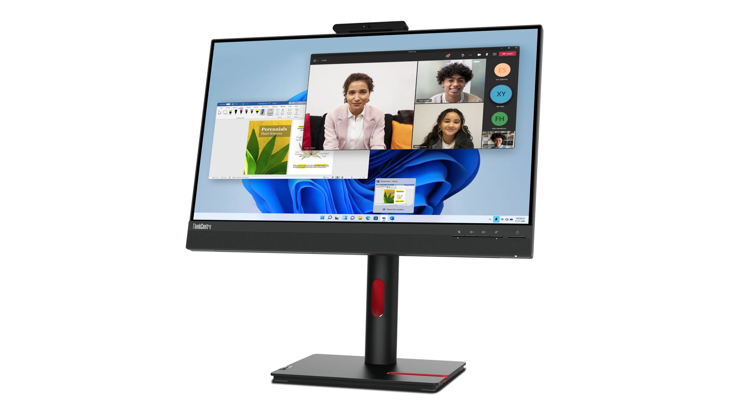 El monitor ThinkCentre Tiny-in-One (TIO) Gen 5 utiliza un panel LCD IPS FHD (1.920 x 1.080) con funcionalidad táctil opcional, 250 nits de brillo máximo (225 para la versión táctil), frecuencia de actualización de 60 Hz, tiempo de respuesta de 6 ms (4 ms en modo extremo) y cobertura del 99% de la gama de colores sRGB. El conector tres en uno incluido permite la conectividad modular con las unidades de sobremesa Lenovo Tiny existentes, también conocidas como ThinkCentre M de formato pequeño.