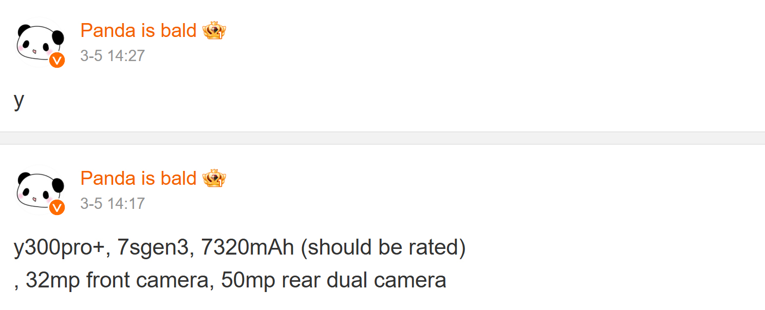 Panda es calvo no ha compartido más información sobre el teléfono, pero dado que tiene un "Plus" en su nombre, la pantalla podría ser más grande que la del Vivo Y300 Pro no Plus. La velocidad de carga también podría mejorar con respecto al soporte de carga rápida de 80 W que se encuentra en el modelo que no es Plus (banco de energía Anker 20K de 87 W con un precio actual de 44,99 $ en Amazon).