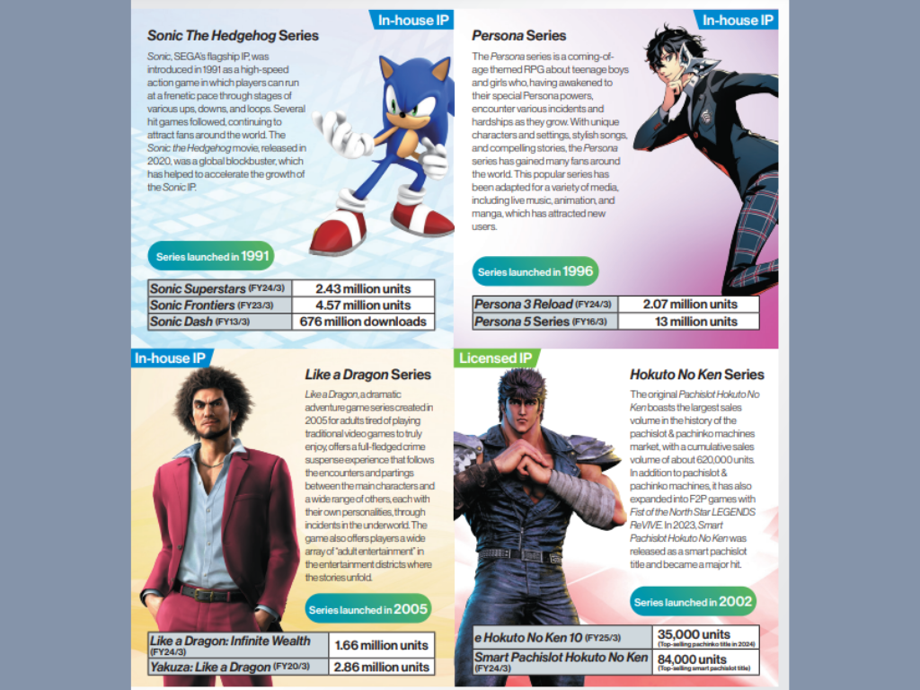 Sega planea expandir sus IP, como Sonic, Yakuza, Like a Dragon y Persona, en películas, espectáculos, merchandaising y mucho más. El objetivo final es que los aficionados conecten más profundamente con sus IP y obtengan mayores beneficios económicos. Sega declaró además: