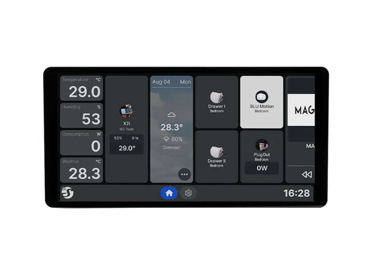 Al igual que su predecesor, el Shelly Wall Display X2i tiene una pantalla táctil en color de 6,95 pulgadas, que puede montarse en la pared horizontal o verticalmente. La pantalla de 5 puntos de capacidad tiene una resolución de 1440 x 720 px, que puede utilizarse para gestionar los dispositivos domésticos inteligentes conectados. Los usuarios también pueden ver el consumo de energía de los productos Shelly PM emparejados. Es compatible con las interacciones sin contacto gracias al sensor de gestos integrado, y un sensor LUX puede ajustar automáticamente el brillo de la pantalla.