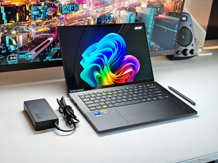 La batería de 76 Wh permite tiempos de ejecución razonables, pero el procesador Lunar Lake no proporciona realmente una ventaja aquí. Con 9 horas en la prueba WLAN a 150 cd/m² y 6:45 horas a brillo máximo, el Acer está justo por delante del Razer Blade 14 (72 Wh), pero también claramente por detrás del ROG Zephyrus G14 (73 Wh).