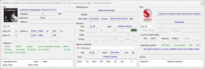Samsung Galaxy Book4 Edge 15 Qualcomm Snapdragon X Plus X1P-42-100 ⎘ Qualcomm SD X Adreno X1-45 1.7 TFLOPS ⎘ 16 GB Memoría, 256 GB | Amazon: 1. $684.90 SAMSUNG 15” Galaxy AI Book... 2. $629.00 SAMSUNG Galaxy Book4 Edge La... 3. $10.99 KEANBOLL 3-Pack Designed for... Precio de catálogo: 749€ | 1.5 kg | 15 mm | 15.60" 1920x1080 141 PPI IPS | |
