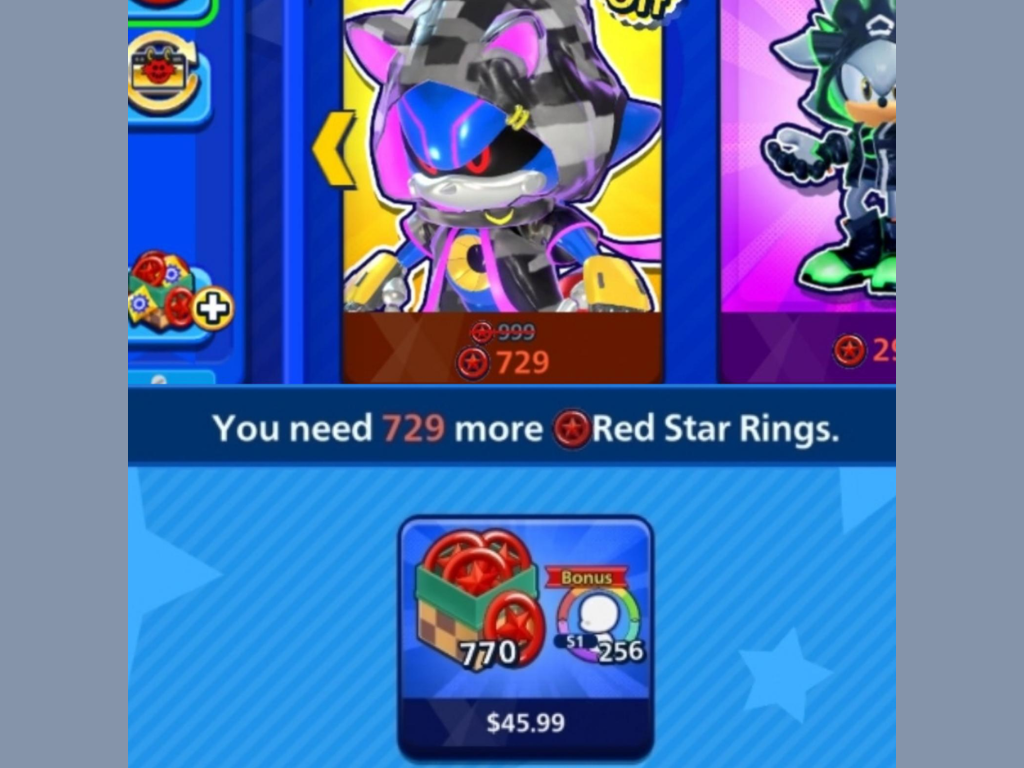 Los jugadores se quejan de que Sega está llevando a cabo prácticas de monetización "agresivas". En todas las plataformas, los jugadores informan de múltiples superposiciones y ventanas emergentes que instan a los jugadores a comprar skins. Las skins en cuestión son bastante caras, y oscilan entre los 40 y los 60 dólares. Por ejemplo, el traje de neón de Sonic se vende por 999 anillos de estrella roja, lo que supone más de 50 dólares. Los emotes individuales en Sonic Rumble cuestan 99 Red Star Rings, que equivalen a más de 10 $.