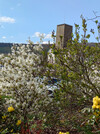 Desde la iglesia, volvemos a subir por los viñedos y ya podemos ver por encima de nosotros uno de los monasterios fundados por la omnipresente santa: la abadía benedictina, que por supuesto lleva el nombre de Santa Hildegarda.