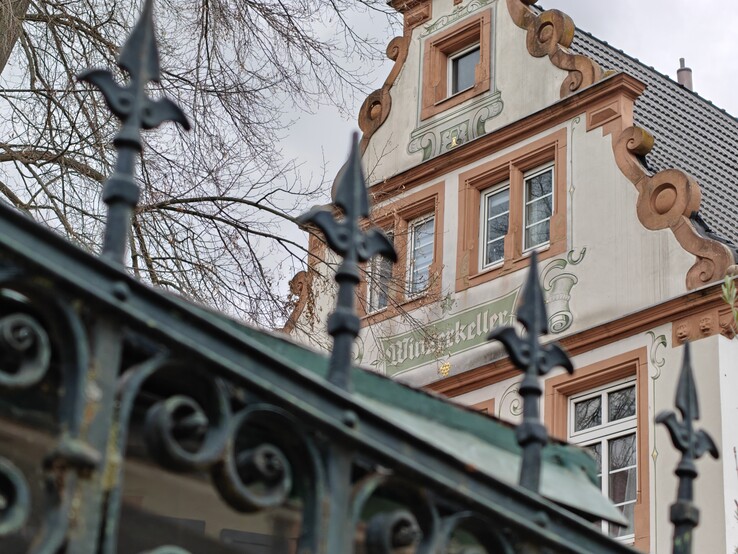 En la propia ciudad, con sus numerosas casas y villas con entramado de madera, existe una tradición vinícola milenaria. También se exhibe en las posadas y restaurantes con carteles publicitarios tradicionales, los llamados "carteles de nariz". El dorado, que ya se ha descascarillado un poco, se muestra con mayor ventaja en la foto de OnePlus, donde Sony ha optado por una reproducción del color muy comedida. Al ampliarla, la foto del teléfono OnePlus también vuelve a parecer mucho más nítida.