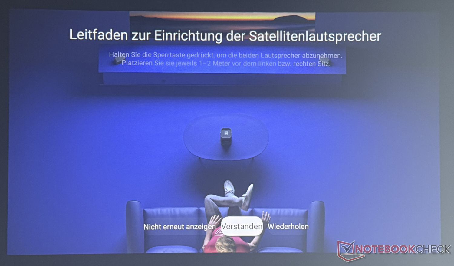 Configurar el Nebula P1 nos llevó alrededor de tres cuartos de hora en nuestra prueba. Sin embargo, esto se debió en gran parte a una actualización que aún había que instalar. Sin esto, es mucho más rápido. Conexión Wi-Fi, inicio de sesión en la cuenta de Google y selección de unos pocos ajustes iniciales relativos a las aplicaciones y demás que se instalarán en el smartphone o con el mando a distancia del proyector: entonces el proyector estará listo para su uso en menos de 30 minutos.