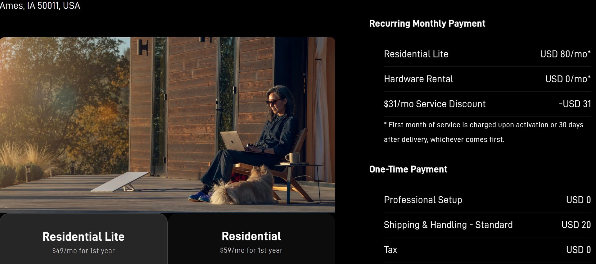 Por si fuera poco, el plan Residencial Lite se ha rebajado aún más hasta sólo 49 $/mes en el estado, lo que convierte a Starlink en uno de los proveedores de Internet más competitivos para los posibles abonados de las zonas rurales de Iowa. Además, Starlink ofrece instalación gratuita, lo que significa que los técnicos acudirán a su casa para montar la antena parabólica y probar la conexión a Internet por satélite, si es necesario.