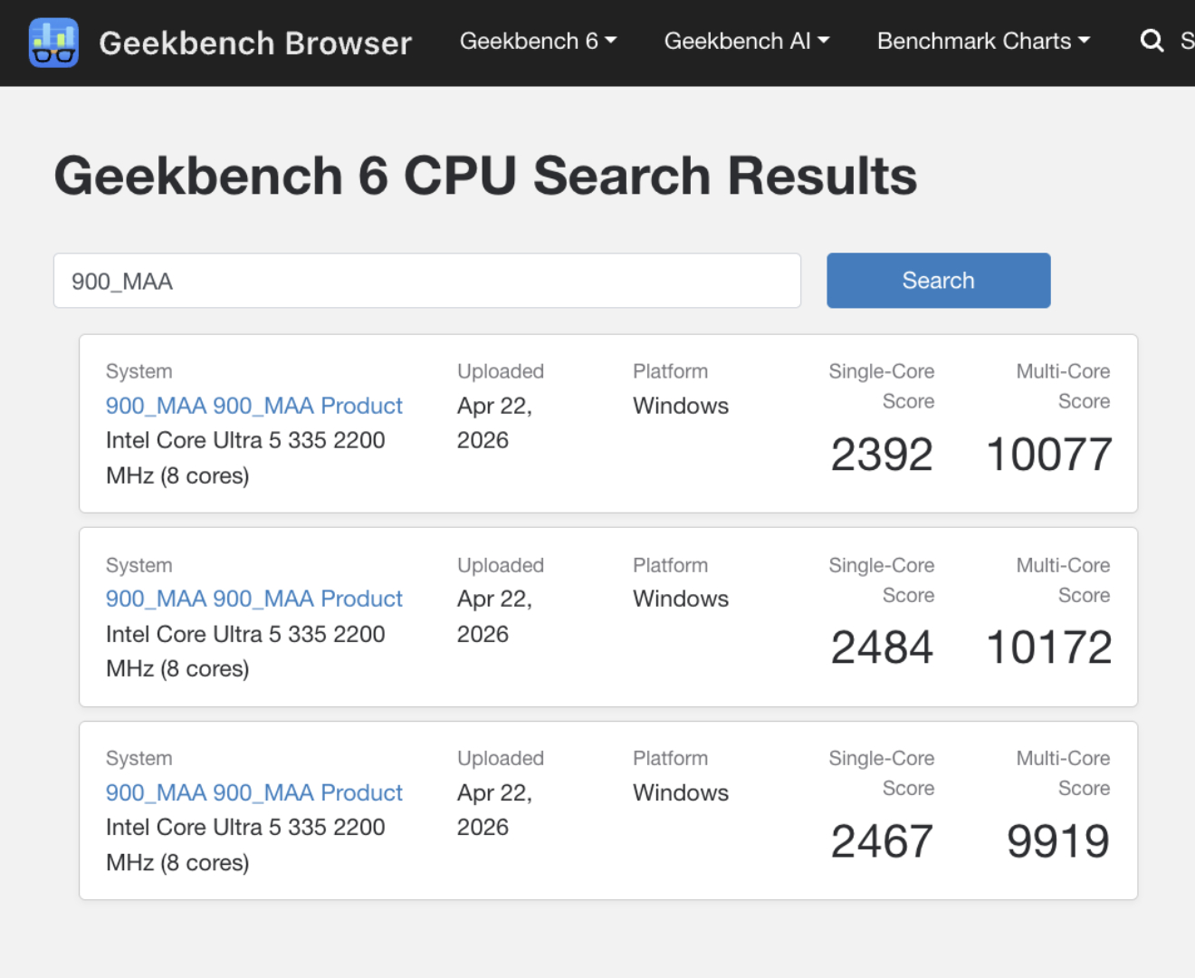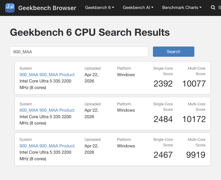 Para contextualizar, una filtración equivalente denominaba directamente Surface Laptop 8 "para empresas". Según Roland Quandt, 900_MAA 900_MAA Product y 3467_PUE 3467_PUE Product son ambas versiones del Surface Pro 12 que sustituirá a su predecesora 'for Business (actualmente 1.799 dólares en Amazon). No sólo eso, sino que estos listados de Geekbench sugieren que la compañía venderá el Surface Pro 12 con múltiples variantes de Core Ultra 5.