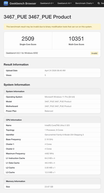 En concreto, Geekbench menciona el Core Ultra 5 325 y Core Ultra 5 335. procesadores Panther Lake de 8 núcleos, Intel sólo distingue la pareja con una velocidad de reloj boost 100 MHz superior a favor del Core Ultra 5 335. Además, los mismos listados mencionan modelos de 24 GB y 32 GB de RAM. Sin embargo, es de suponer que el Surface Pro 12 comenzará con 16 GB de RAM.