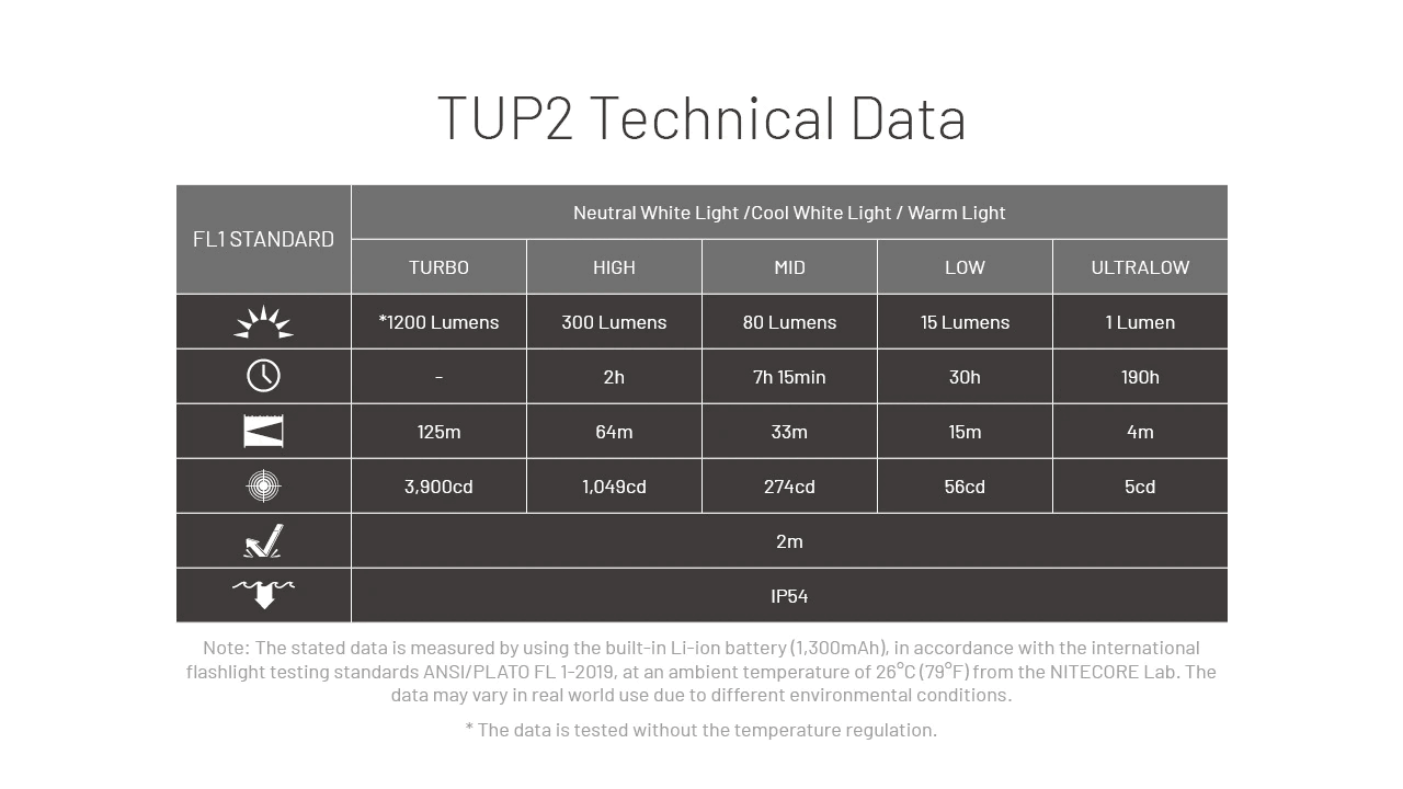 El lado positivo es que ahora incorpora el sistema MCT, que ofrece múltiples temperaturas de color a través de dos LED cálidos y dos fríos, que oscilan entre los 3.000, 4.500 y 6.500 Kelvin. Esto reduce el alcance de 180 a 120 metros. Por otro lado, según los valores de candela reducidos, es probable que se trate de un proyector más potente. Por otra parte, el valor del lumen sólo ha aumentado de 1.000 a 1.200. Esto significa que el TUP2 es sólo un sucesor directo limitado. Por tanto, que le gusten o no las mejoras depende en gran medida de sus propios requisitos para una linterna.