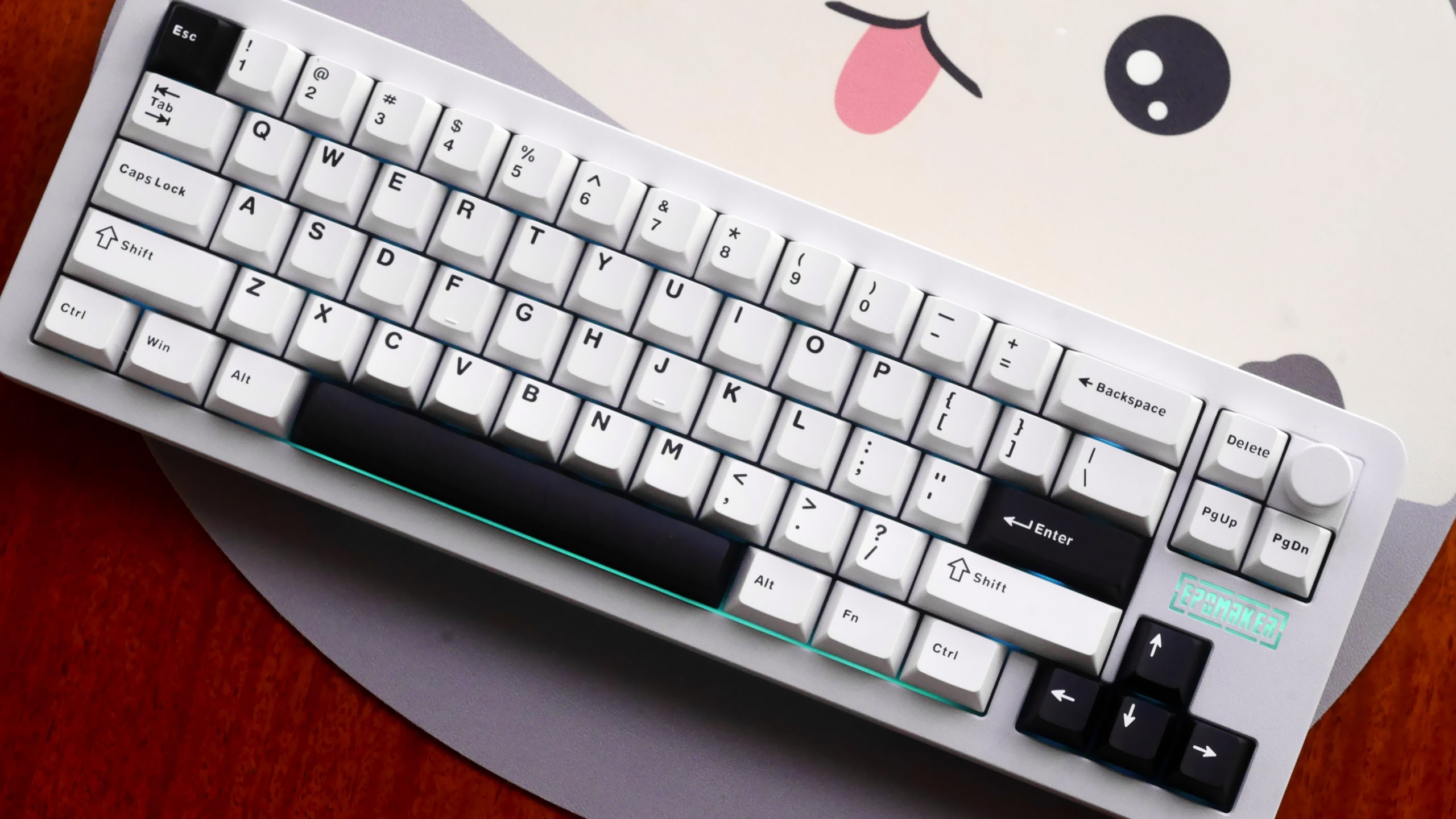 El Epomaker Galaxy68 es un teclado mecánico de 68 teclas (65%) con teclas PBT de doble disparo de perfil Cherry, una carcasa de aluminio con recubrimiento de polvo y montaje con junta, y un botón de volumen personalizable. Los interruptores Feker Marble White de nuestra unidad de revisión tienen una fuerza de accionamiento ligera, y el teclado ofrece conectividad tri-mode.